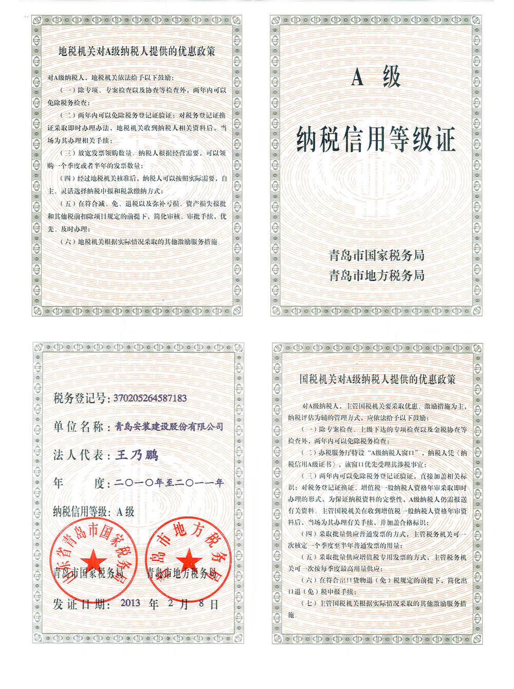 納稅信用A級(jí)證明